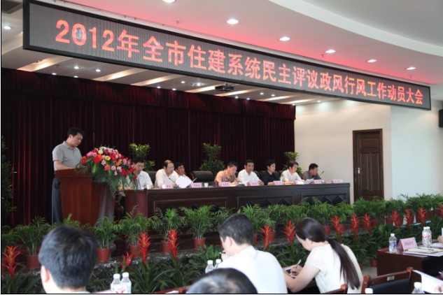 5月17日,市住建委召開全市住建系統(tǒng)民主評議政風(fēng)行風(fēng)工作動(dòng)員大會(huì),市住建委黨委書記、主任楊劍作動(dòng)員報(bào)告,并出臺(tái)評議方案。圖為市供水總公司總經(jīng)理陳衛(wèi)國作表態(tài)發(fā)言。