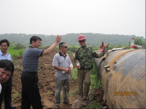 總經(jīng)理陳衛(wèi)國(左四)、黨委書記陳永根(右二)在城區(qū)安全飲水工程施工現(xiàn)場聽取施工負責(zé)人匯報,要求加快進程,確保質(zhì)量,按時完工,向全市人民交上一份合格答卷。