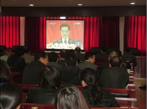 11月8日上午8點(diǎn)30分,公司組織黨員、中層干部、機(jī)關(guān)人員80余人聚集在六樓會議室,集中收看十八大開幕式實(shí)況直播,迎接中國共產(chǎn)黨第十八次全國代表大會的勝利開幕。