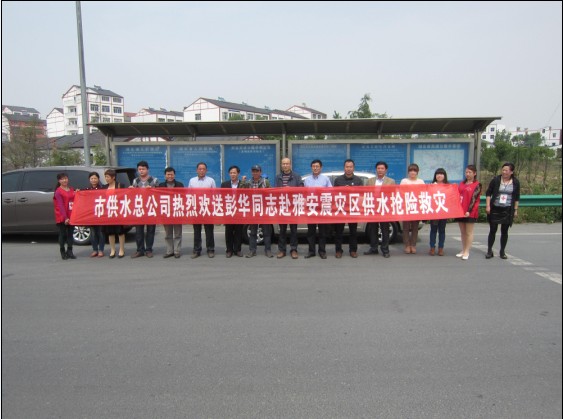 4月25日,荊門市供水總公司黨委書記陳永根,副總經(jīng)理王宜龍等一行到荊門南高速路口歡送加壓站職工彭華隨湖北紅十字會12人供水救援隊赴雅安震災(zāi)區(qū)搶險救災(zāi)。出發(fā)前,該司領(lǐng)導(dǎo)囑咐彭華在災(zāi)區(qū)注意自身安全;全力以赴的撲入到搶險救災(zāi)工作中去;把全體供水職工“心系雅安,你我同在”的愛心帶去。彭華表示不辜負全體員工的囑托,把愛心帶到災(zāi)區(qū),并保證圓滿完成搶險救災(zāi)任務(wù)。