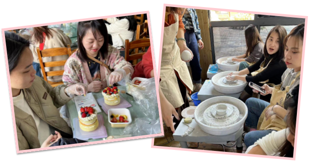 中國(guó)文化博大精深,陶藝制作也是由來(lái)已久。老師帶領(lǐng)大家了解陶瓷文化,感受陶瓷魅力,介紹陶瓷發(fā)展與成就、講解陶瓷在生活中的運(yùn)用。女同胞們結(jié)群組隊(duì),一起感受制作陶藝的樂趣。