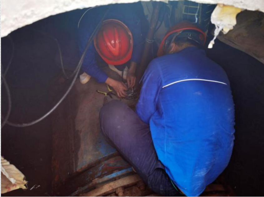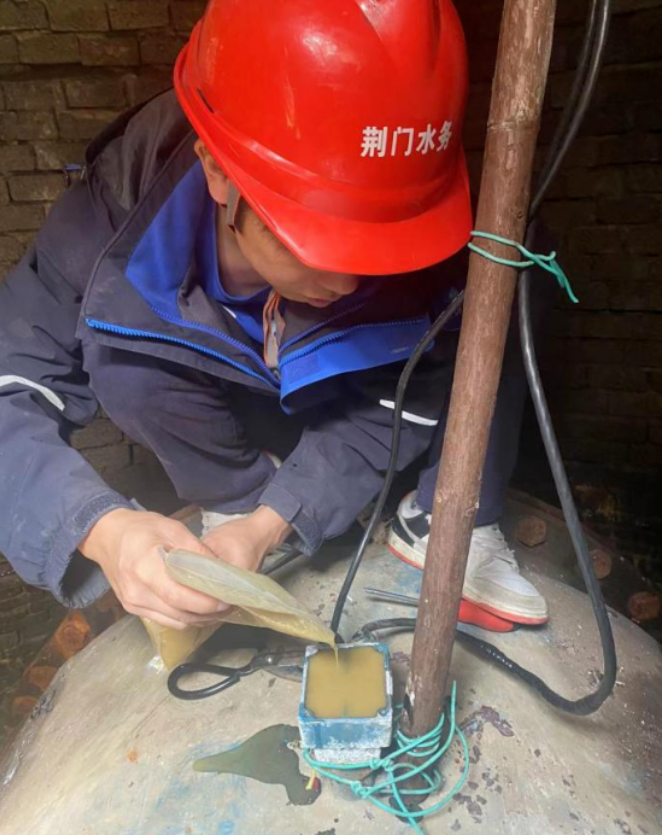 廠領導在綜合評估后,同意其思路,并作安全操作提醒。雖早有心理準備,但在打開接線盒后的瞬間,李為龍等人還是倒吸一口涼氣。他們發(fā)現(xiàn)整個接線盒內(nèi)部被深色不透明的膠體充滿,無法掌握線路走向。短暫思索后,他們發(fā)揮水務人不怕苦、能戰(zhàn)斗的精神,嘗試按廠家給出建議,用熱風槍加熱密封膠,但事與愿違,效果并不理想,密封膠沒有自動融化流出。李為龍“改巧為笨”,在加熱的同時用小刀清理變軟的膠體。該處操作空間狹小,且不能損壞內(nèi)部的線路和接線端子,必須凝神聚力,是個“精細活”“體力活”。即便同事們輪番上陣,依然個個汗如雨下。功夫不負有心人,眾人合力熬過“漫長的”4小時,最終完成了既定任務。