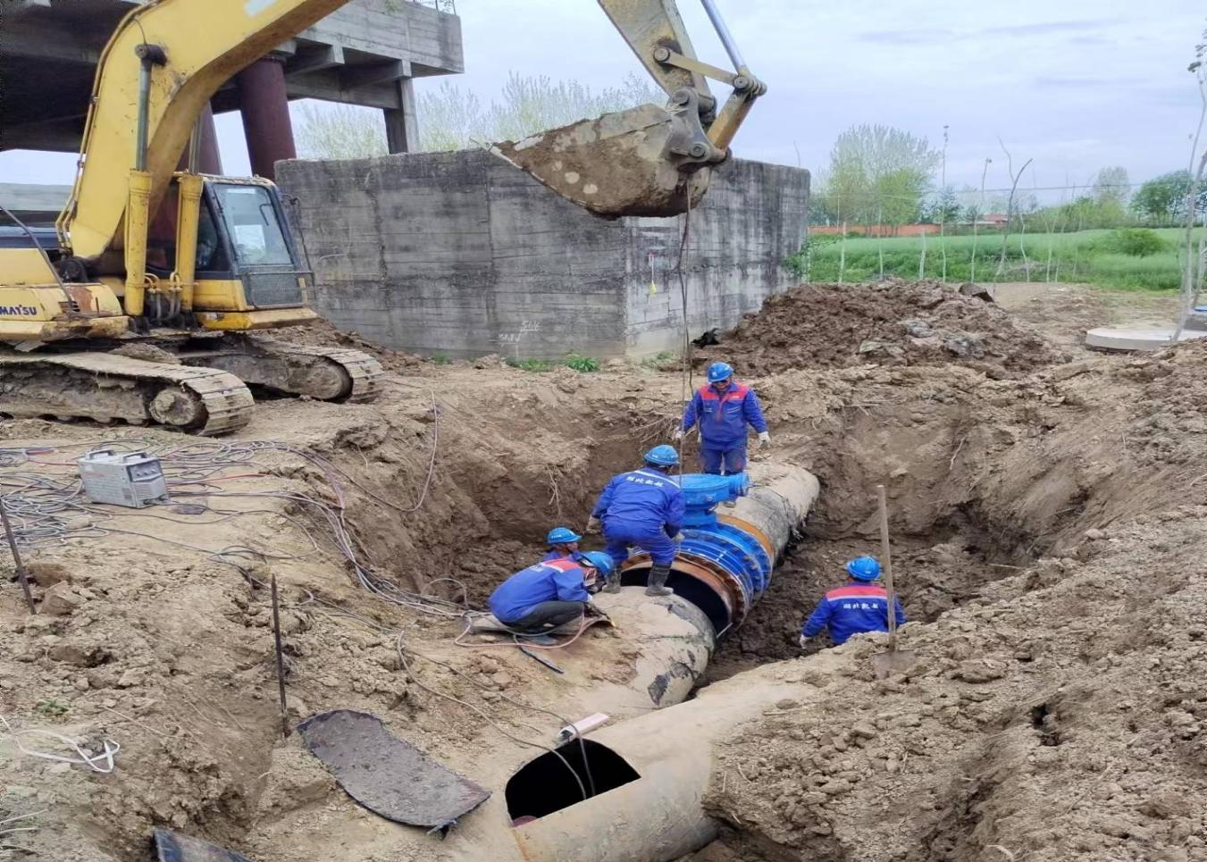 為優(yōu)化胡集鎮(zhèn)供水管網,提高供水系統(tǒng)效能,荊襄供水公司及施工單位經過21小時的艱苦奮戰(zhàn),4月10日凌晨,完成關山沉砂池及關山加壓站兩處DN1000新舊管道碰頭接駁施工,并恢復供水。