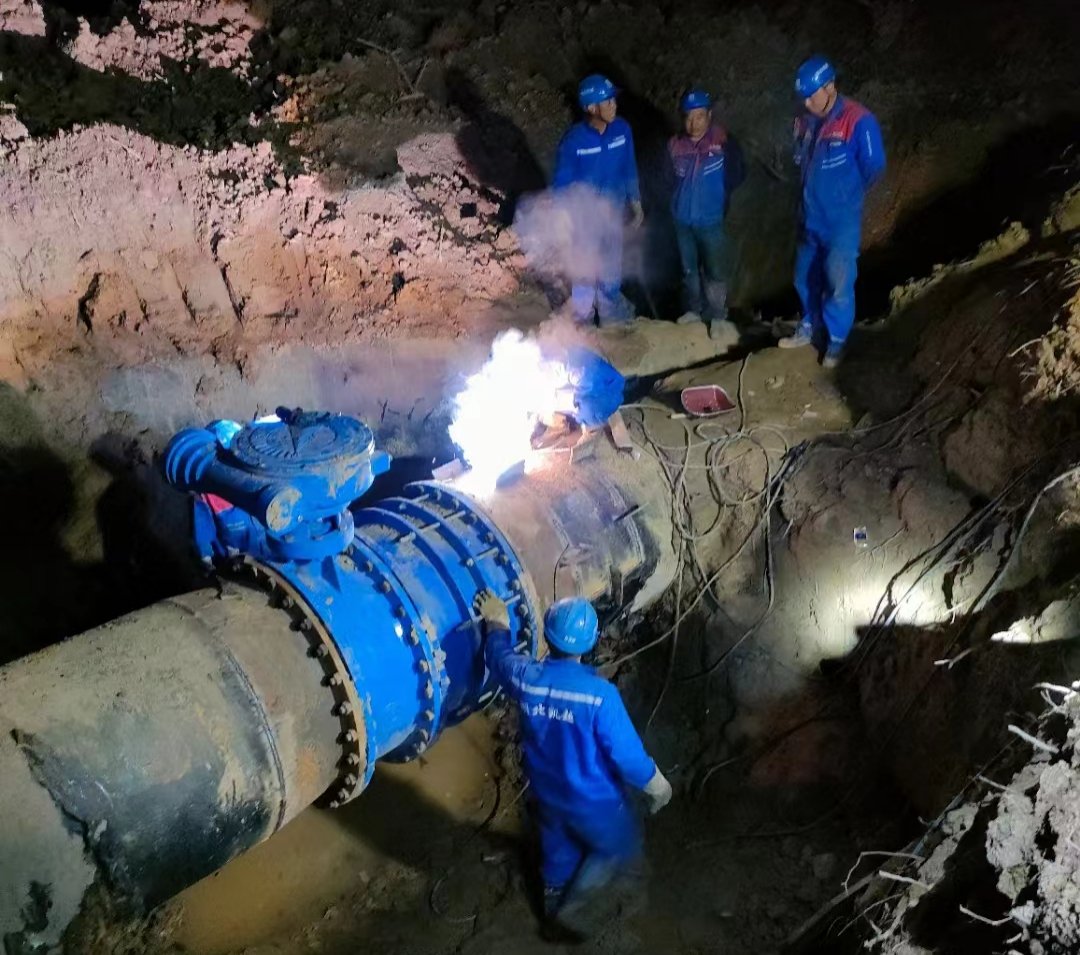 4月9日7時至次日凌晨4時,40余名工作人員陸續(xù)就位,充分調配備用原水,關閉總閘、排水、抽水、切割、焊接,施工過程一氣呵成。