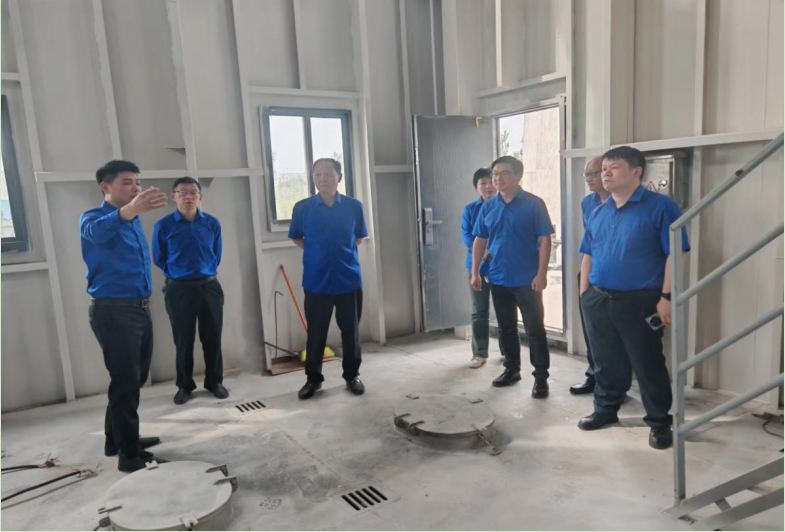 圖為董事會(huì)一行查看取水浮船試運(yùn)行調(diào)試現(xiàn)場(chǎng)