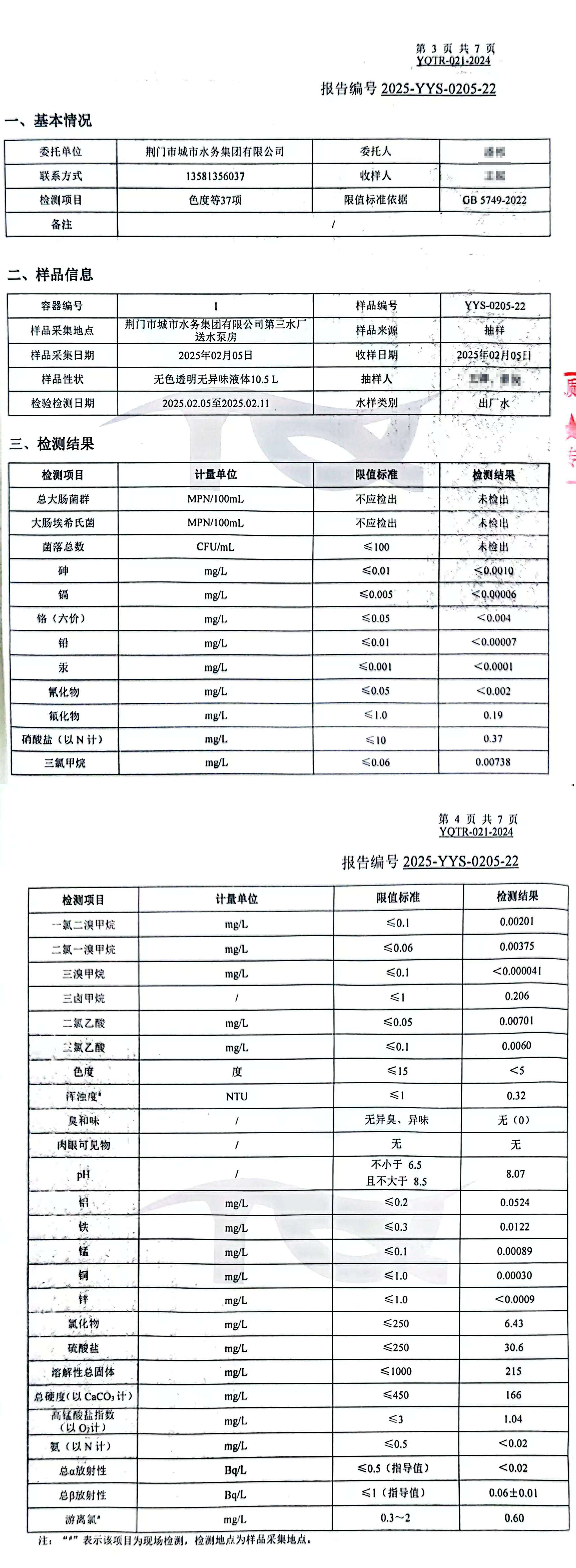 2025年2月,集團委托具有CMA認證資質(zhì)的第三方檢測機構(gòu),依據(jù)《生活飲用水衛(wèi)生標準》(GB5749-2022)對“四廠一站”出廠水、管網(wǎng)末梢水進行全分析檢測,水質(zhì)合格率100%。依據(jù)《地表水環(huán)境質(zhì)量標準(GB3838-2022)》檢測漳河原水,檢測結(jié)果為符合Ⅱ類標準。