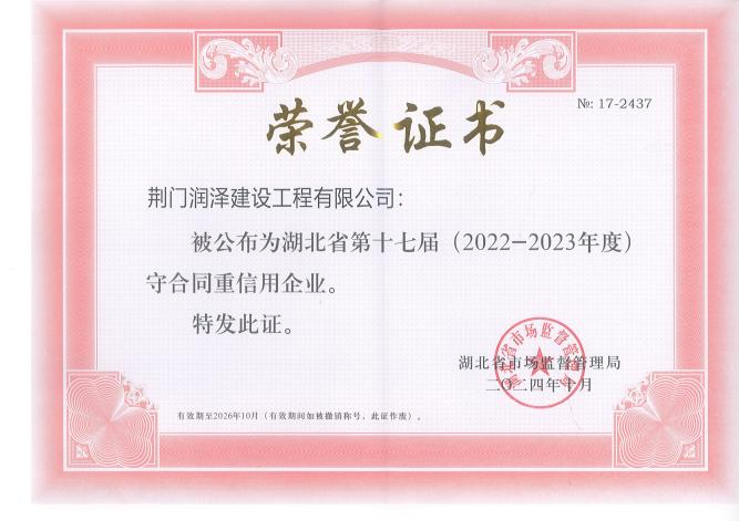 憑著“誠信為本、質(zhì)量為根”的堅(jiān)守,潤澤公司連續(xù)兩年獲評(píng)荊門市和湖北省(2022-2023年度)“守合同重信用企業(yè)”,市場競爭力和品牌影響力持續(xù)攀升。