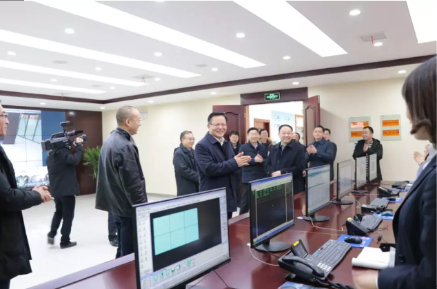2018年剛完成升級改造的供水調(diào)度監(jiān)控中心寬敞明亮、恢弘別致。張愛國詳細(xì)查看了應(yīng)急指揮系統(tǒng)運(yùn)行情況,并對供水生產(chǎn)經(jīng)營情況進(jìn)行了詢問。