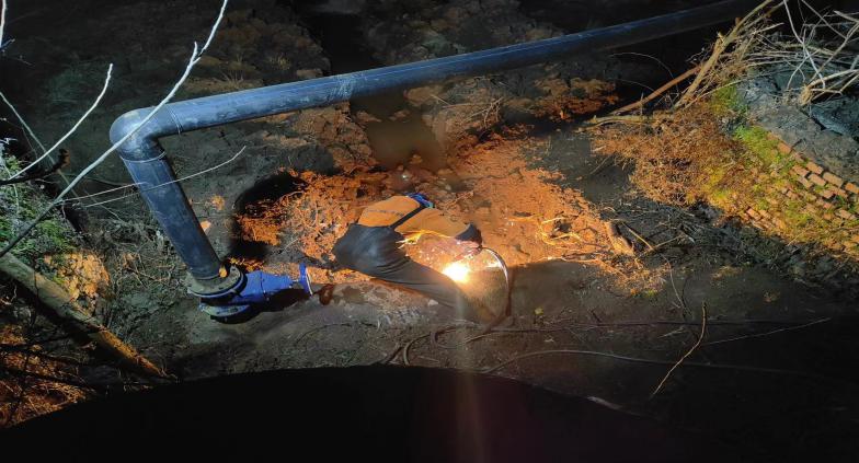 為保障正常供水、防止爆管和影響周邊農(nóng)戶生產(chǎn)勞作等,引起二水廠領(lǐng)導(dǎo)們的高度重視,研究決定對漏點進行封堵,經(jīng)過前期充分的準備。